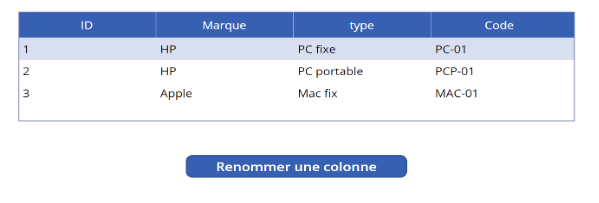 - Supposons que souhaitez renommer la colonne « Code interne » en « Code ». Vous pouvez utiliser la fonction « RenameColumns » comme suit :